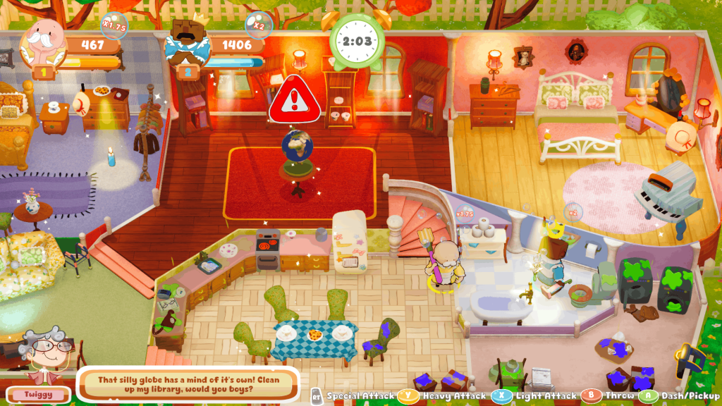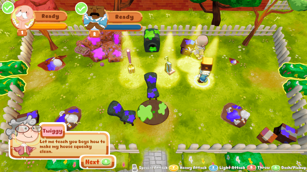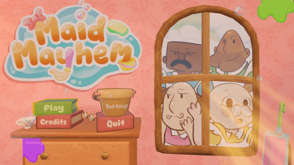 Maid Mayhem is a 2-4 player Action Party game where you and your friends take the role of a Big Buff Bald Maid and have to clean Grandma Twiggy’s house at the same time! Take your trusty tools to clean and fight each other to make sure that you clean the most! Can you become THE BEST MAID!